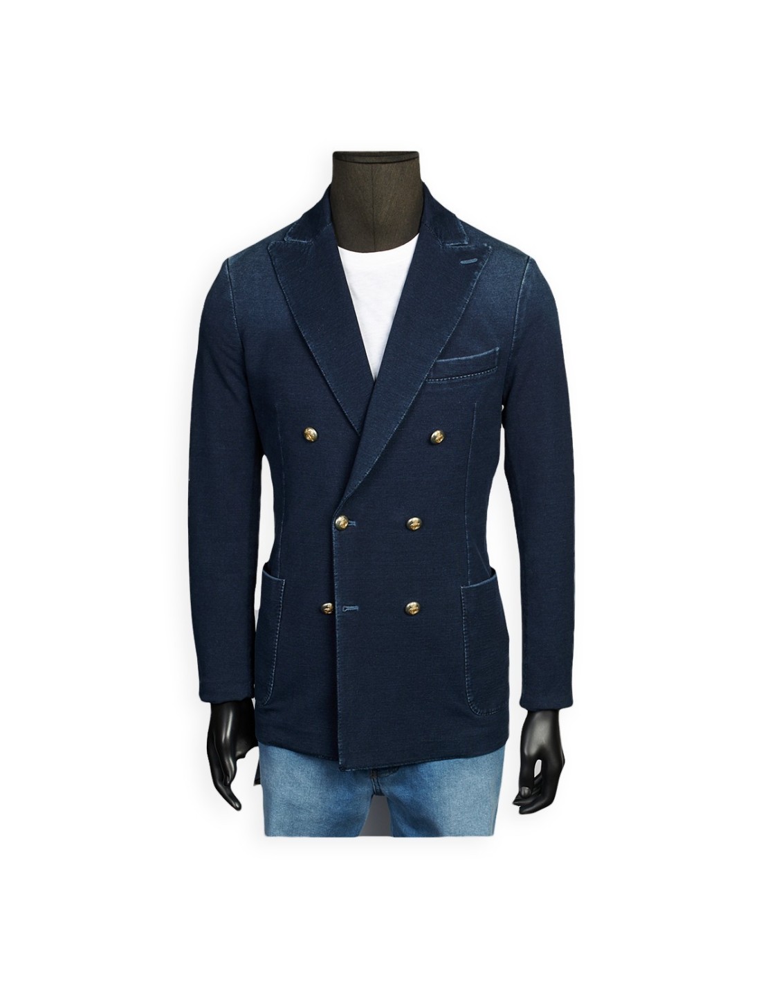 CHAQUETA DENIM CRUZADA BOT.DORADO ALG/EL